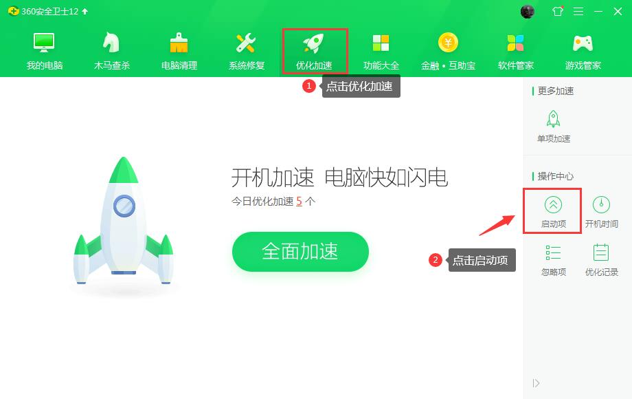 1.打開360安全衛士,進入“優化加速”界面;