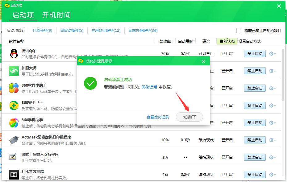 4.啟動項禁止成功;如圖