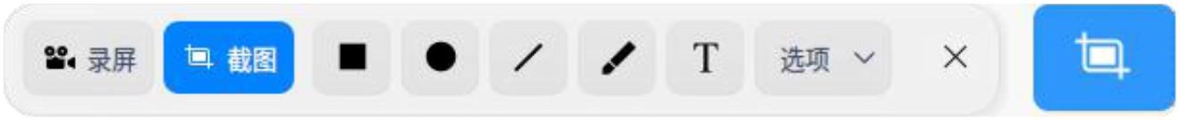 在截圖過程中,您可以點擊工具欄及其對應屬性欄上的各個圖標以完成各項操作。運行錄屏截圖,通過鼠標選中截圖區(qū)域后,工具欄會自動出現在截圖的下方。