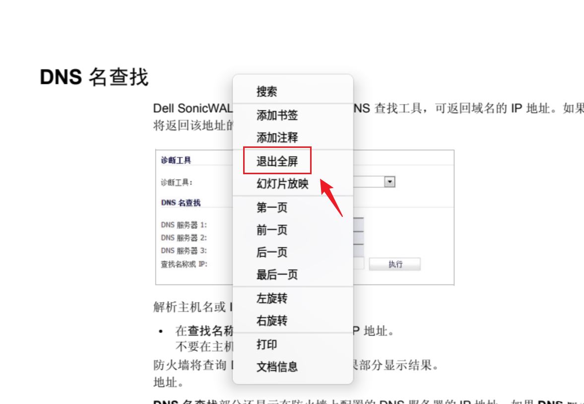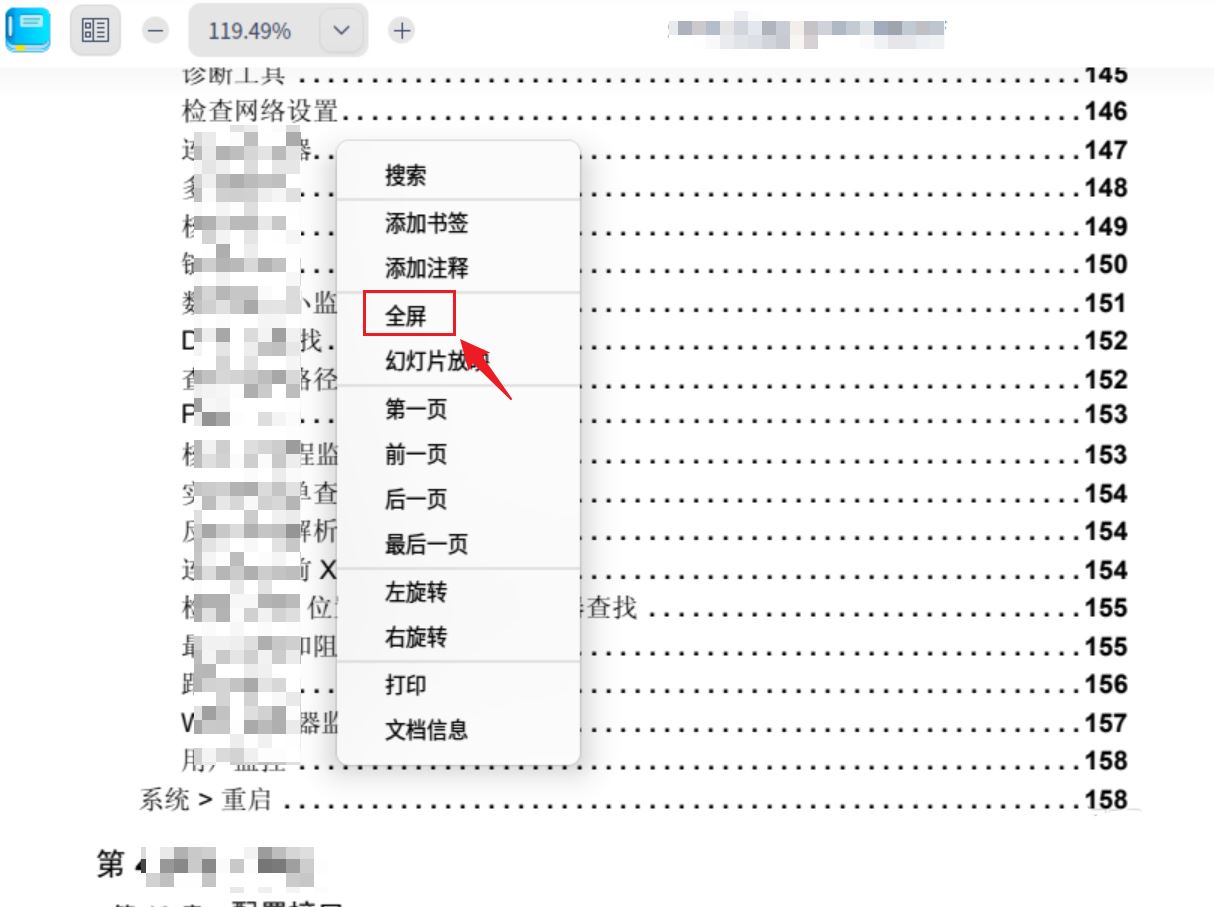 在文檔查看界面,右鍵選擇【全屏】。