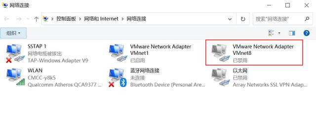 虛擬機和宿主機之間的通信是通過虛擬網卡VMware Network Adapter VMnet8實現的,它的功能可參見如下關閉虛擬網卡實驗: