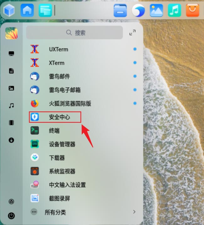 啟動器中單擊打開【安全中心】。