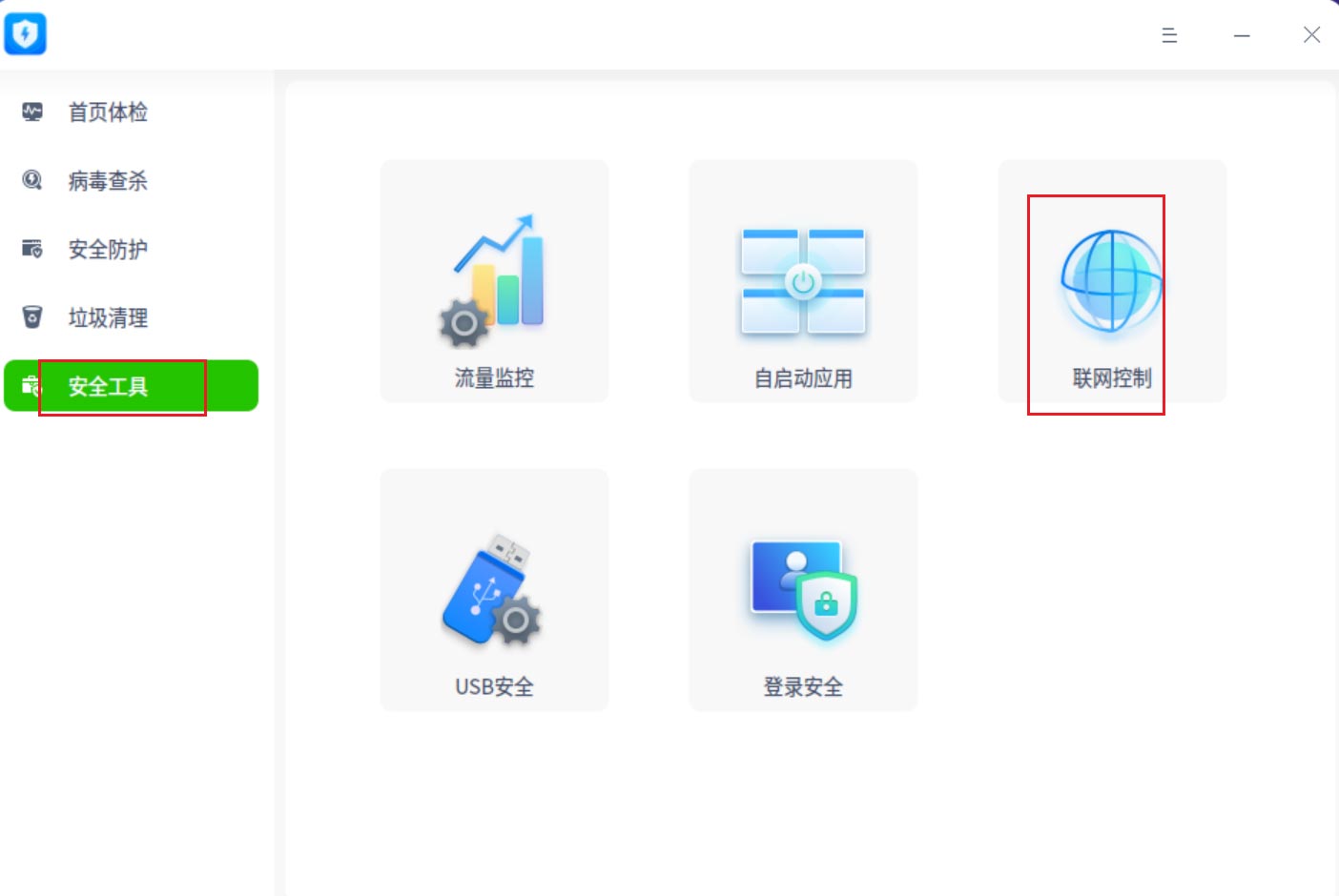 在【安全中心】中單擊左側【安全工具】。