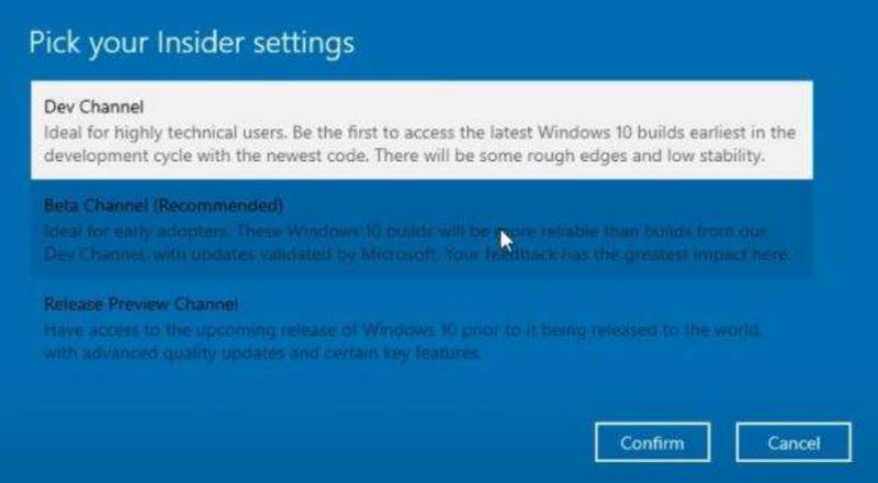 步驟 5: 選擇您的 Microsoft 帳戶,然后單擊“開發頻道”。 請記住,您將從 Dev 頻道獲得的產品可能包含許多錯誤。