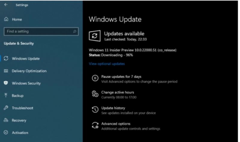 步驟 7:根據您的 Internet 連接,您需要一些時間才能在 Windows 10 PC 上接收 Windows 11 Insider Preview Build 22000.51 更新。收到后,單擊下載以開始下載更新。