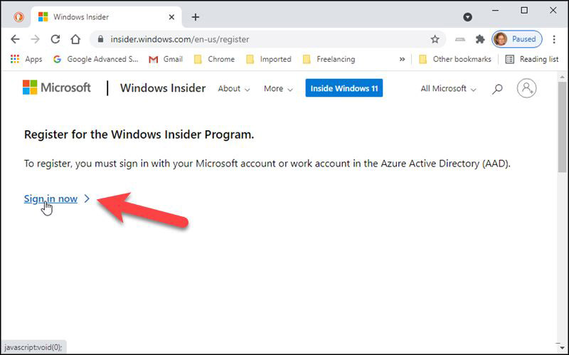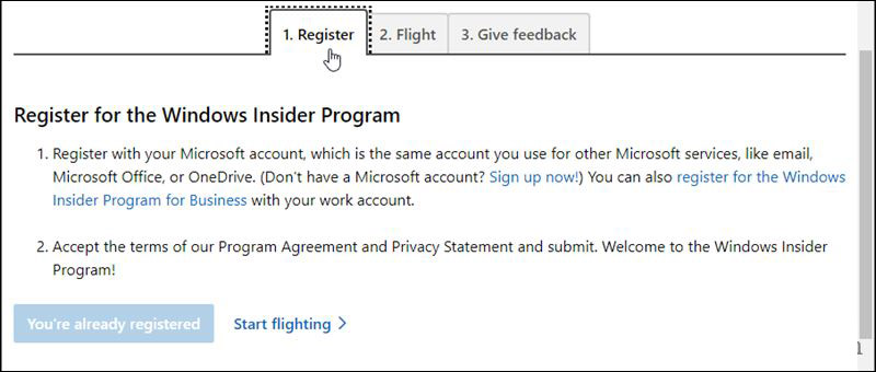 如果您尚未注冊 Windows 預(yù)覽體驗計劃,請轉(zhuǎn)至https://insider.windows.com/en-us/register并單擊立即登錄。