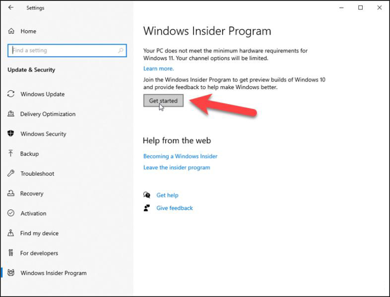返回Windows 設(shè)置中的更新和安全 > Windows 預(yù)覽體驗計劃。單擊開始。