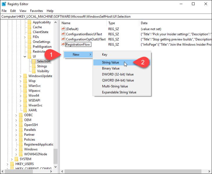 HKEY_LOCAL_MACHINE\SOFTWARE\Microsoft\WindowsSelfHost\UI\Selection然后,雙擊右側(cè)的UIBranch。如果您在列表中沒有看到UIBranch,請參閱下面的創(chuàng)建它。