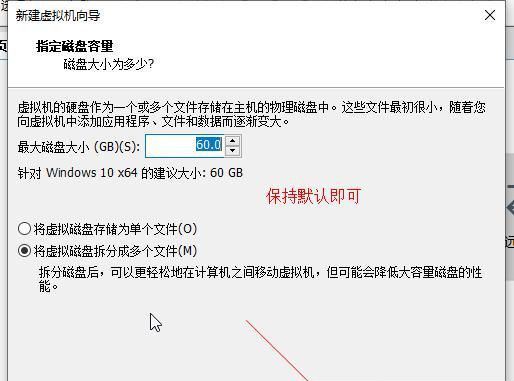 6.選擇虛擬機(jī)分配磁盤的大小,保持默認(rèn)直接點(diǎn)下一步即可。“最大磁盤大小”這里如果你覺(jué)得60GB不夠可以修改更大一些,比如200GB,這里的磁盤大小只是一個(gè)數(shù)字,不會(huì)真的就占用60GB。