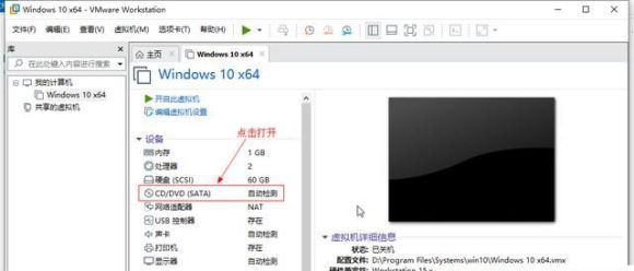 8.新建虛擬機(jī)完成后會(huì)回到下圖所示的VMware workstation界面,雙擊下圖箭頭所示的“CD/DVD自動(dòng)檢測(cè)”這一項(xiàng),我們要把準(zhǔn)備好的windows11系統(tǒng)添加進(jìn)來(lái)。