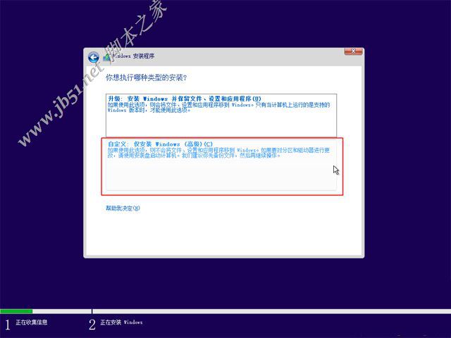 7、執行的安裝類型,要選擇【自定義:僅安裝Windows(高級)】,才能純凈安裝;