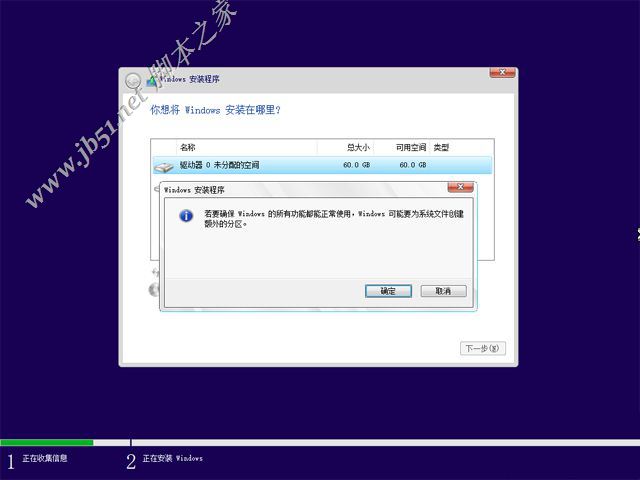 10、彈出提示框,提示會建立額外分區,直接點擊確定;