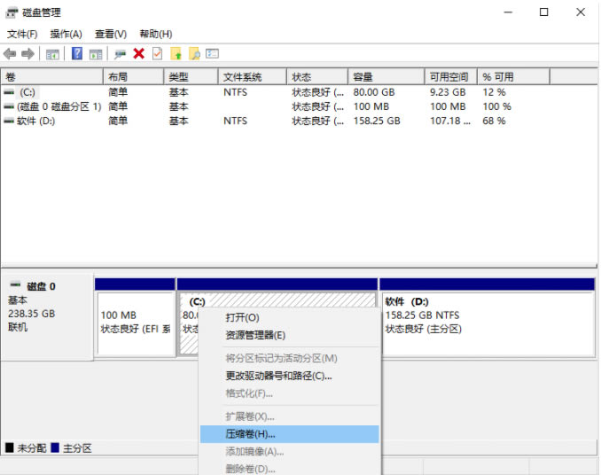1.首先我們在win7桌面中進入到磁盤管理頁面,給即將安裝的win11系統(tǒng)劃分一個新的分區(qū),預(yù)留大概50G左右的空間即可。