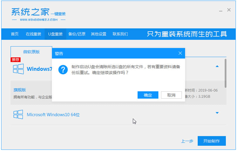 2.我們將u盤(pán)插到電腦當(dāng)中,然后點(diǎn)擊”開(kāi)始制作“。