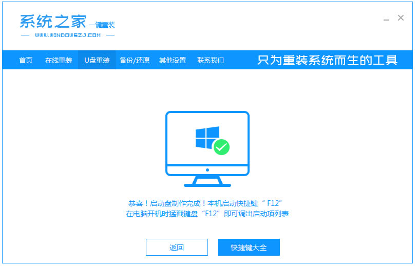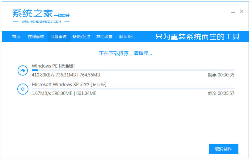 5.此時(shí)只需等待系統(tǒng)下載并成功制作U盤(pán)工具。然后拔出U盤(pán)并將其插入需要重新安裝系統(tǒng)的計(jì)算機(jī)。