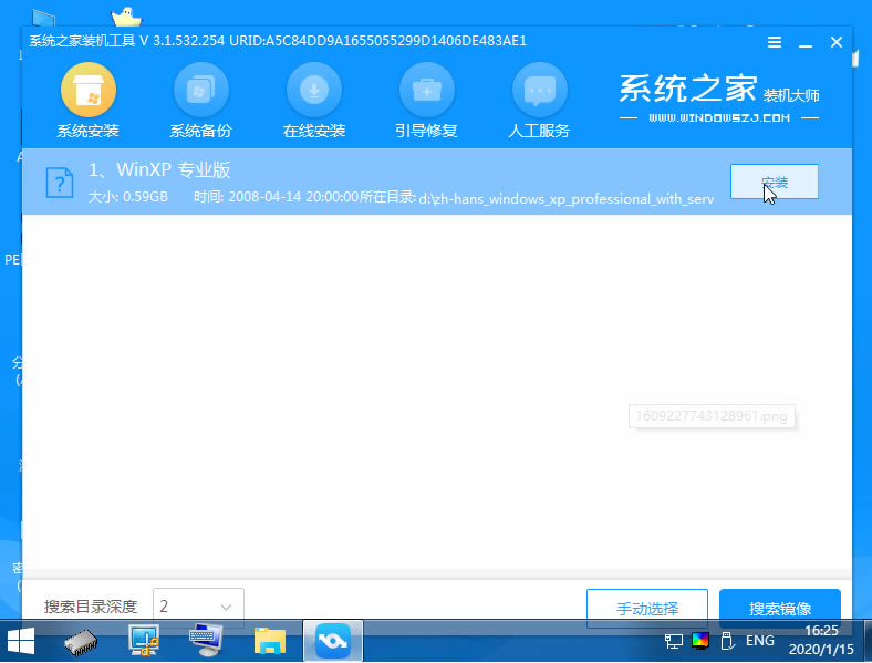 7.加載系統(tǒng)家庭PE系統(tǒng)界面,出現(xiàn)需要安裝的系統(tǒng),然后單擊安裝即可。