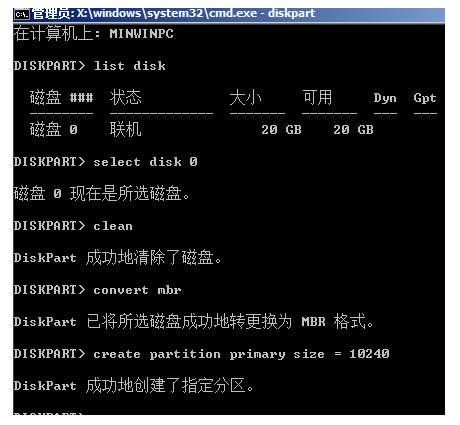7、輸入:create partition primary size = xxx,回車。創(chuàng)建主分區(qū)大小(MB)。