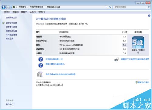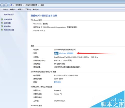 2、這是系統對硬件性能的一個評分工具,通常我們在電腦屬性中,就可以看到分級--windows體現指數,點擊進去就可以看不同的組件的得分,可以幫助您決定升級哪些組件