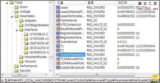 新增名字為TcpAckFrequency的DWORD值,并輸入數值為1