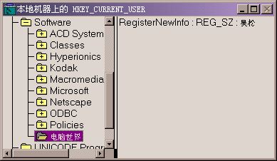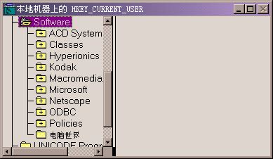 例如,我們需要在HKEY_CURRENT_USER\Software分支下創(chuàng)建一個“電腦世界”的主鍵(或子鍵)。