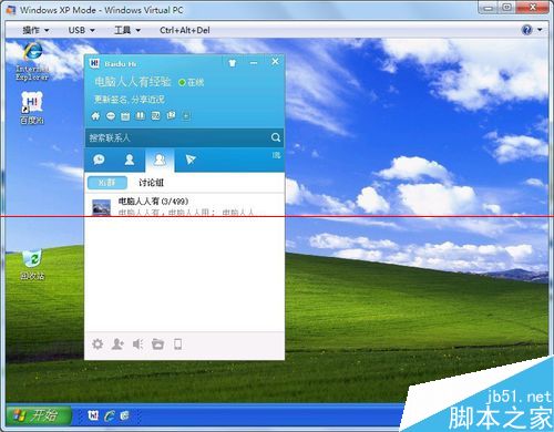 3、Windows7操作系統中不能使用百度客戶端,卸載、重裝HI客戶端不見效。只能在虛擬機中安裝,臨時使用,也不錯。