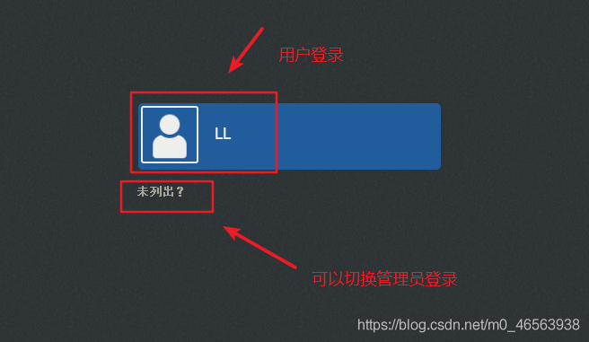 我們可以看見 未列出這三個(gè)字,我們點(diǎn)擊這個(gè)可以選擇用管理員身份登錄。