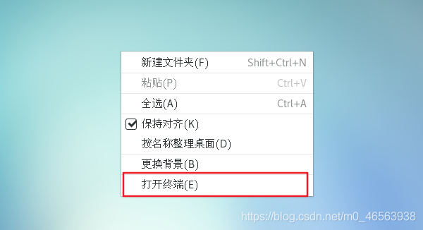 在我們界面里面右鍵,點(diǎn)擊打開終端,就可以在里面敲命令了