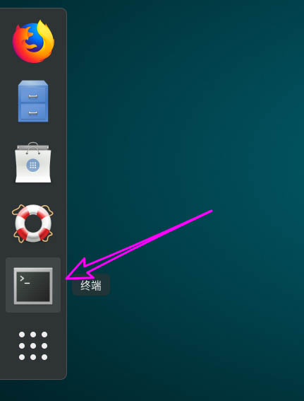 2、點側(cè)邊欄的【終端】圖標(biāo)按鈕,打開【終端】程序,