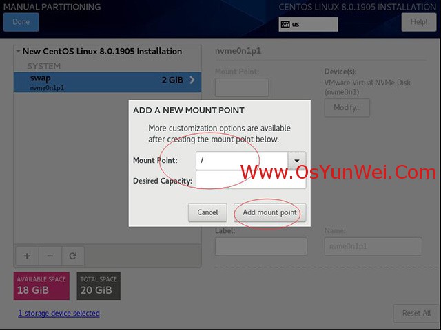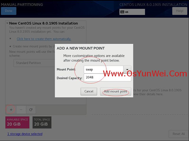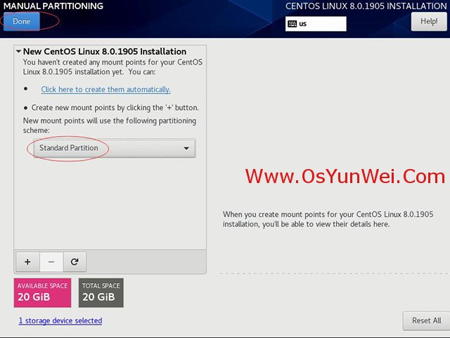 新掛載點使用以下分區方案:標準Standard Partition