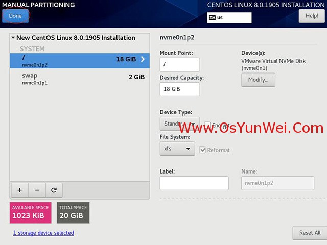 選擇Storage Configuration存儲配置,Custom自定義,點左上角的“完成Done”,進入下面的界面