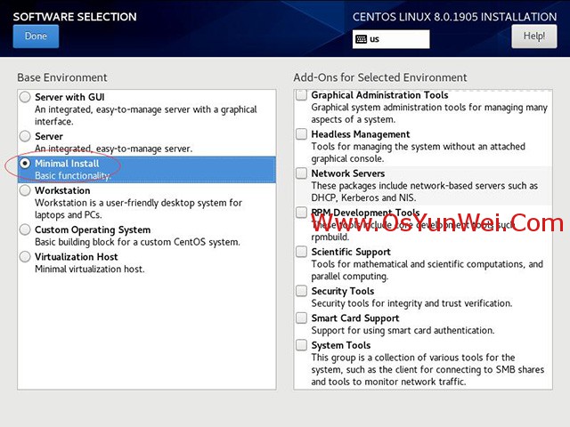 服務器建議選擇第三項,最小安裝。