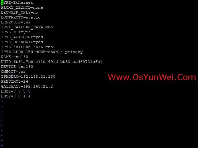 vi ifcfg-ens160 #編輯配置文件,添加修改以下內容