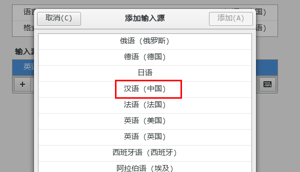 4、在輸入源中,點擊“漢語(中國)”。