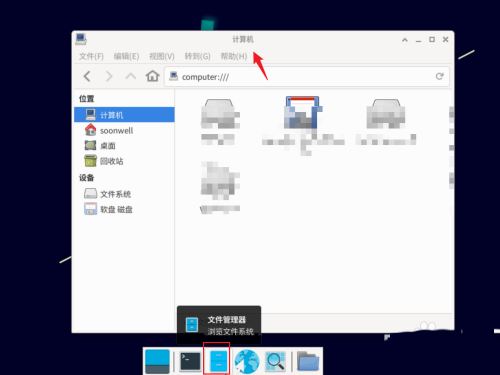 單擊任務欄【文件管理器】圖標打開Thunar文件管理器。