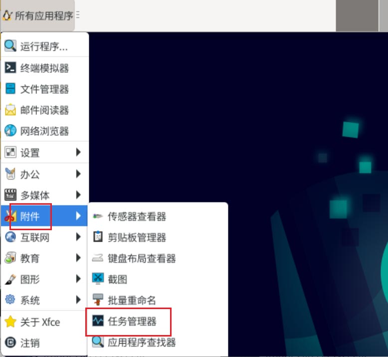 點(diǎn)【附件】-【任務(wù)管理器】。