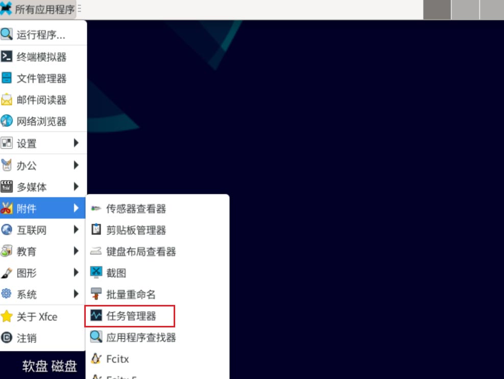 在【附件】中單擊打開【任務管理器】。