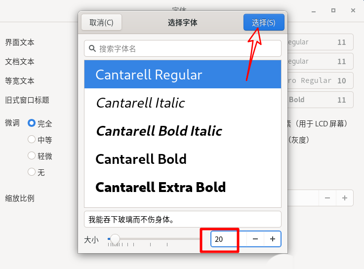 5、用戶也可以在編輯框直接輸入字體值,之后點(diǎn)【選擇】退出設(shè)置。