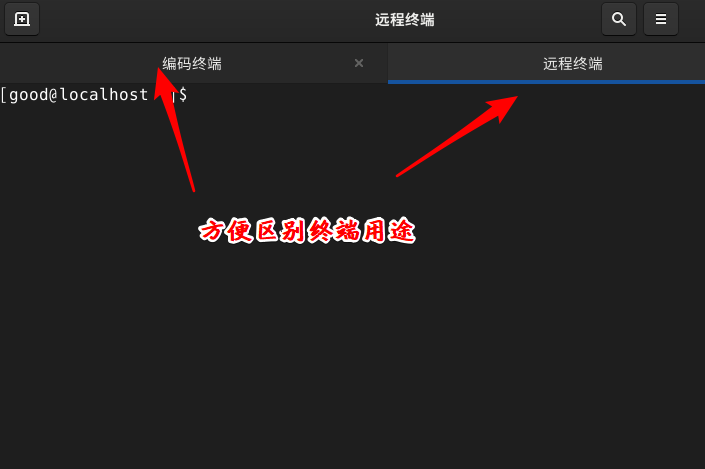 1、打開gnome終端后,點【+】號即可添加終端標簽頁。