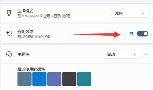 4、進(jìn)入后,關(guān)掉其中的“透明效果”