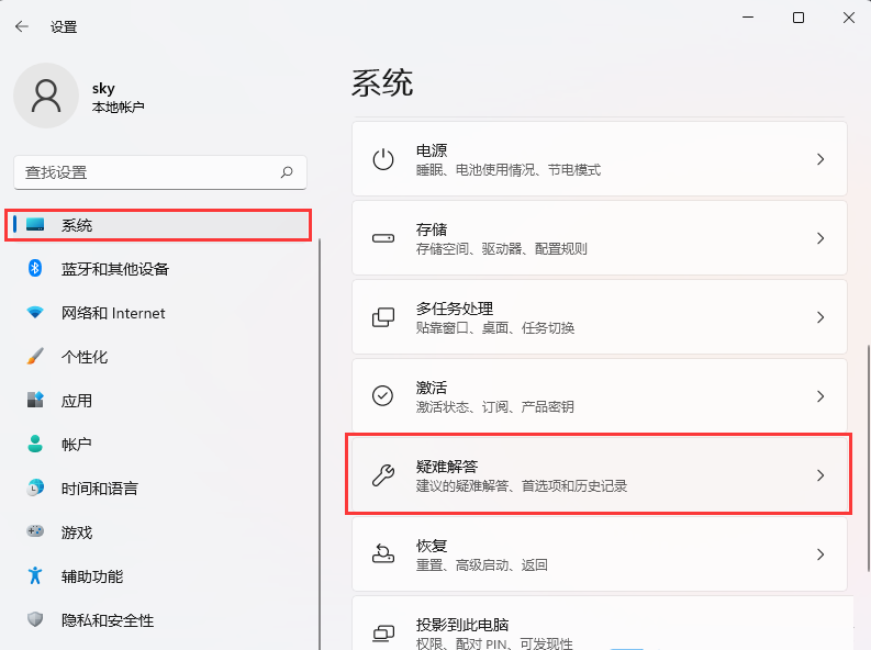 2、Windows 設(shè)置窗口,左側(cè)邊欄,點(diǎn)擊【系統(tǒng)】,右側(cè)找到并點(diǎn)擊【疑難解答(建議的疑難解答、首選項(xiàng)和歷史記錄)】;