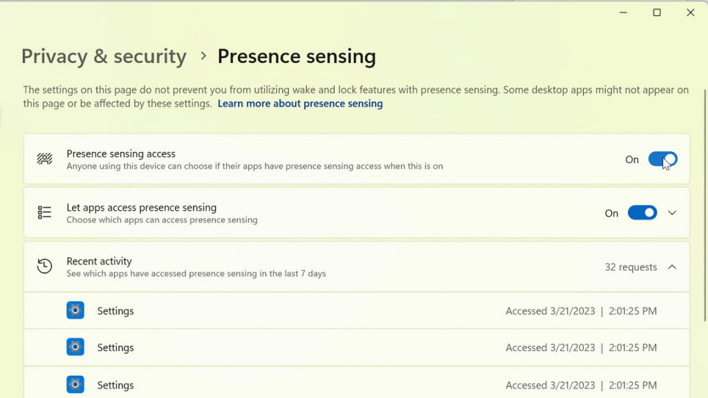 微軟承諾不收集任何圖像或元數據,所有處理都在設備硬件上本地完成,以最大程度地保護隱私。如果設備支持,用戶可以在“設置”>“隱私和安全”>“存在感應”下找到這些設置。
