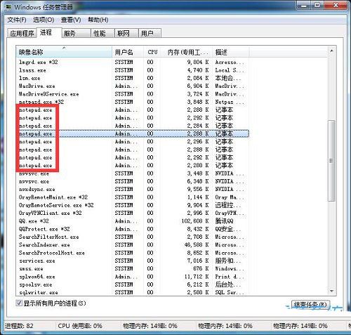 2、從進(jìn)程中,可以看得出很多的進(jìn)程名稱都是一樣的;
