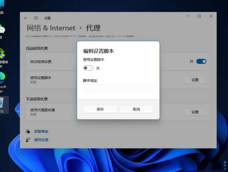 2、進入頁面在左邊欄選擇“代理”,將右邊的“使用安裝程序腳本”關閉即可。