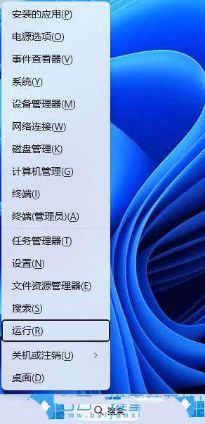 1、首先,按鍵盤上的【 Win + X 】組合鍵,或右鍵點擊任務欄上的【Windows徽標】,在打開的右鍵菜單項中,選擇【運行】;