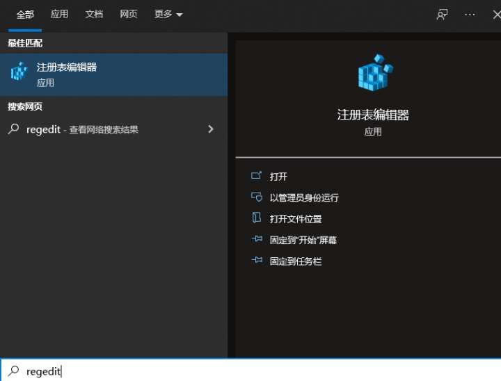 2、按【Win + S】組合鍵,打開Windows 搜索,搜索欄中輸入【regedit】命令,然后點擊系統給出的最佳匹配【注冊表編輯器應用】;