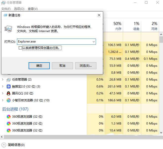 方法一:1、首先,按【Ctrl + Alt + Del】組合鍵,然后點擊任務管理器。任務管理器窗口,點擊左上角的【文件】,在打開的下拉項中,選擇【運行新任務】。新建任務窗口,輸入【Explorer.exe】命令,然后按【確定或回車】即可(勾選以系統管理權限創建此任務);