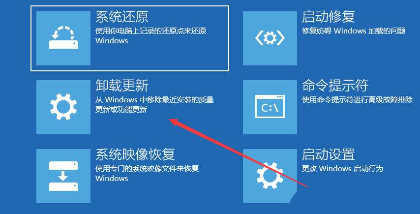 3、多個選項下,點擊【卸載更新(從 Windows 中移除最近安裝的質量更新或功能更新)】;
