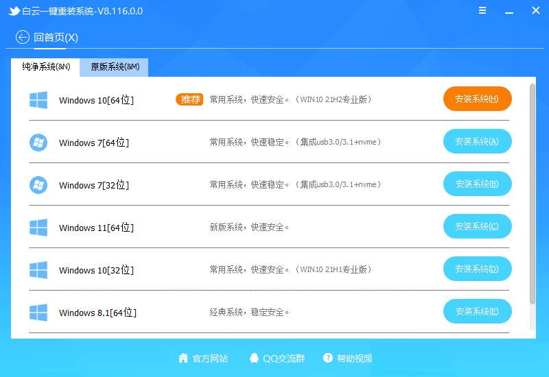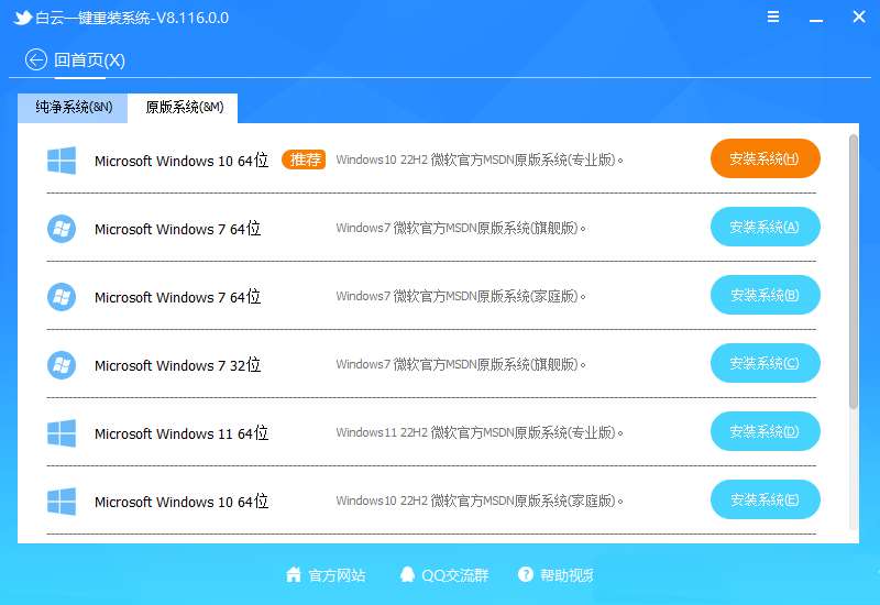 2、提供了【純凈系統(tǒng)】和【原版系統(tǒng)】,方便用戶(hù)下載并且安裝適合自己的操作系統(tǒng);