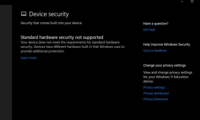 大家好!我對硬件安全標準有疑問,即便達標了也顯示不支持。由于個人問題,我重置了筆記本電腦,但在重置之前支持標準硬件安全性。我的筆記本電腦安裝了所有最新更新,使用的版本是 Windows 11 Home 22H2 22621.1265。