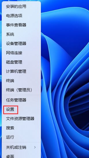 1、首先,按鍵盤上的【 Win + X 】組合鍵,或右鍵點擊任務欄上的【W(wǎng)indows 開始徽標】,然后在打開的菜單項中,選擇【設置】;